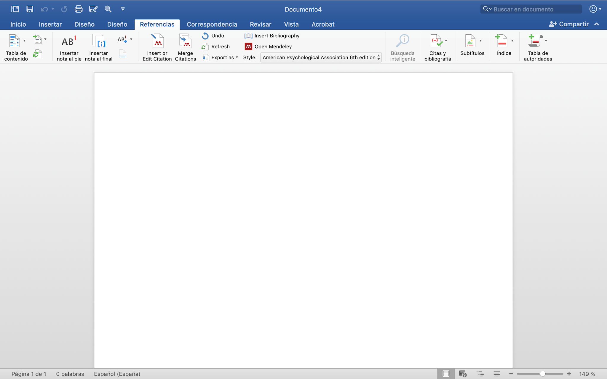 Para formatear un documento solo tenemos que hacer clic en nuestro procesador, le damos a insertar citas y buscamos el documento que queremos citar. Te permite además insertar citas desde My Library o desde un grupo concreto.