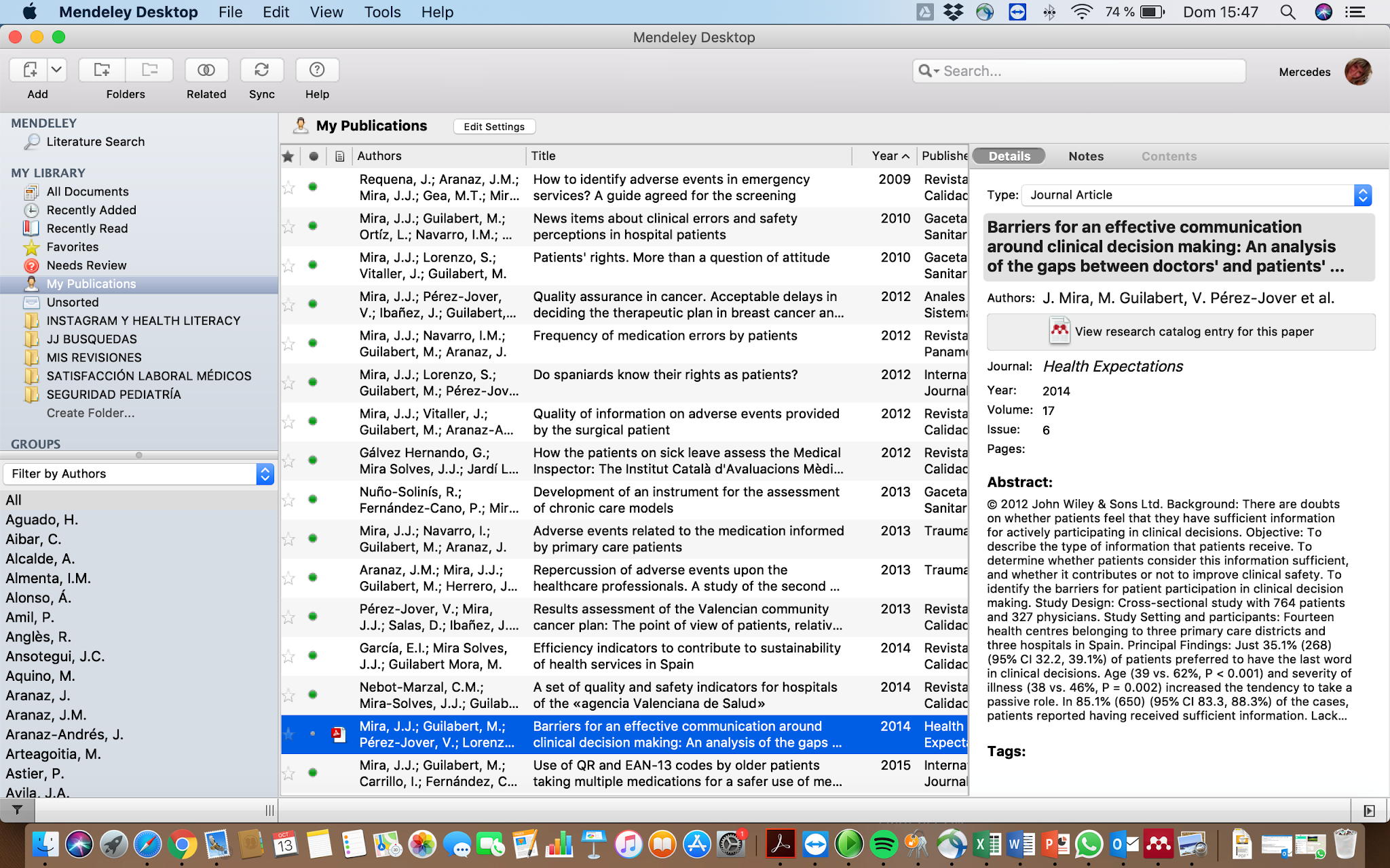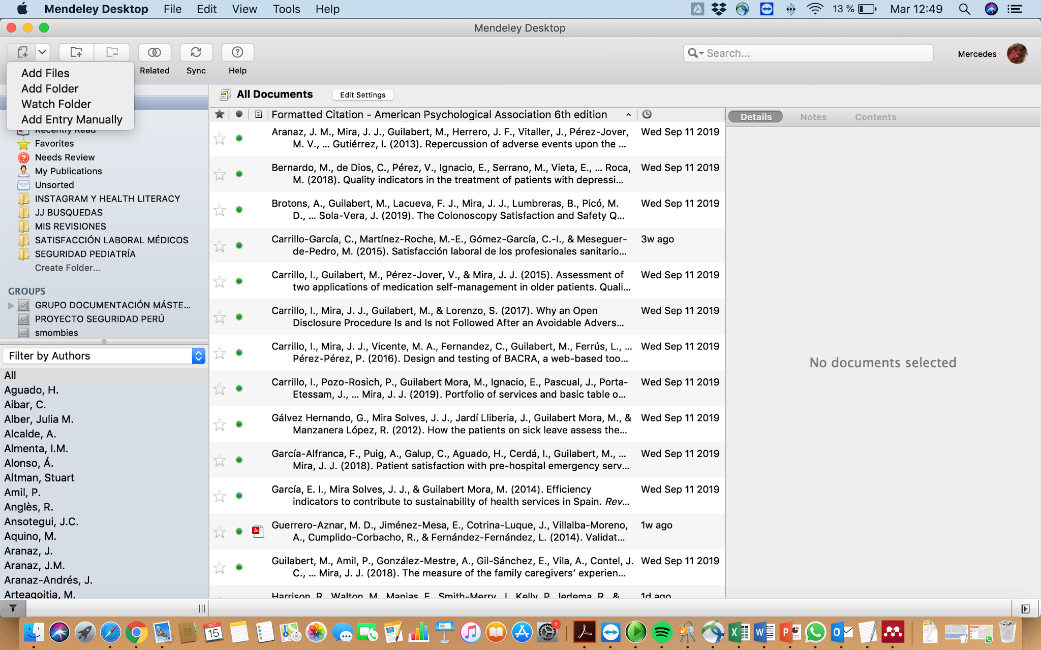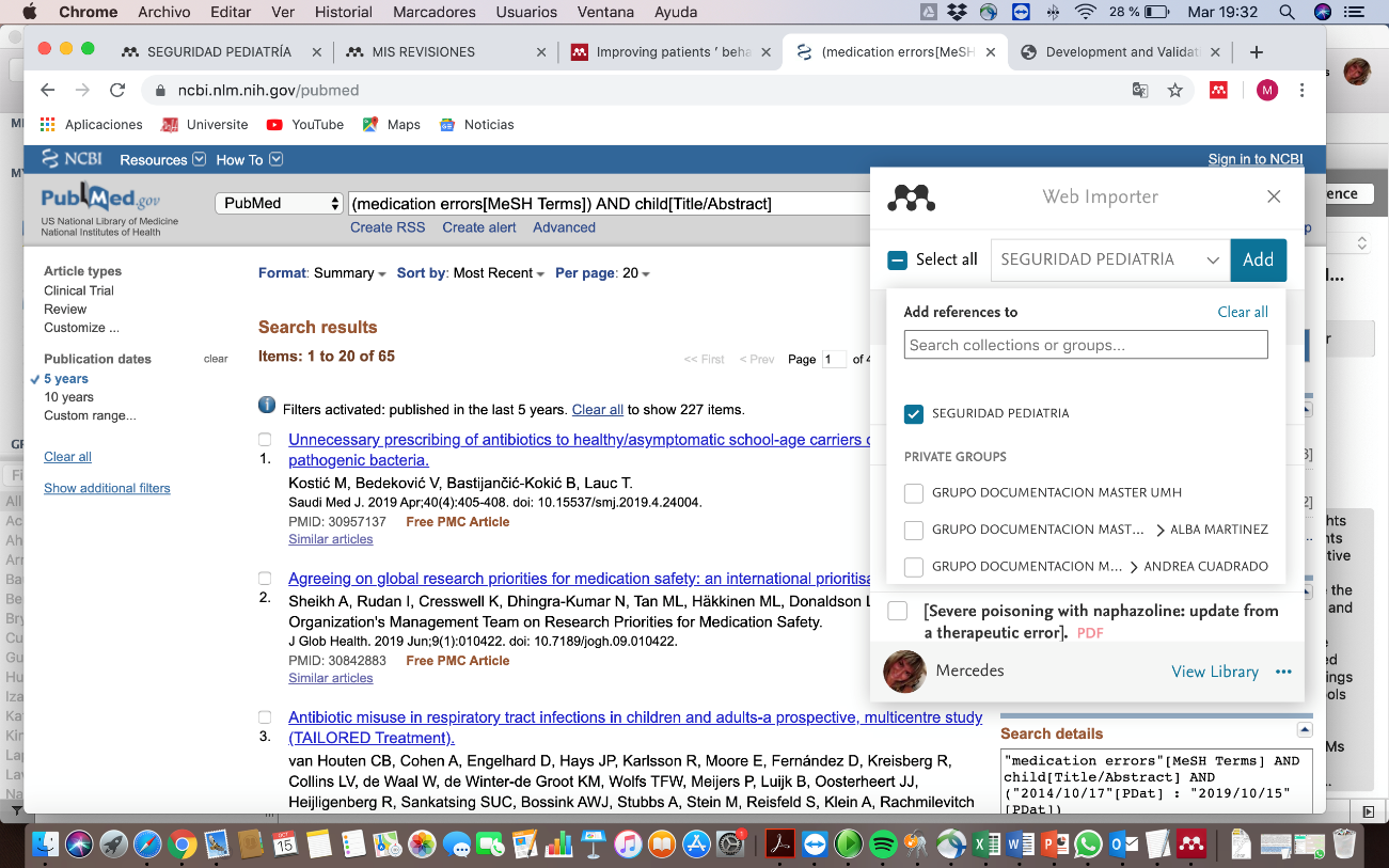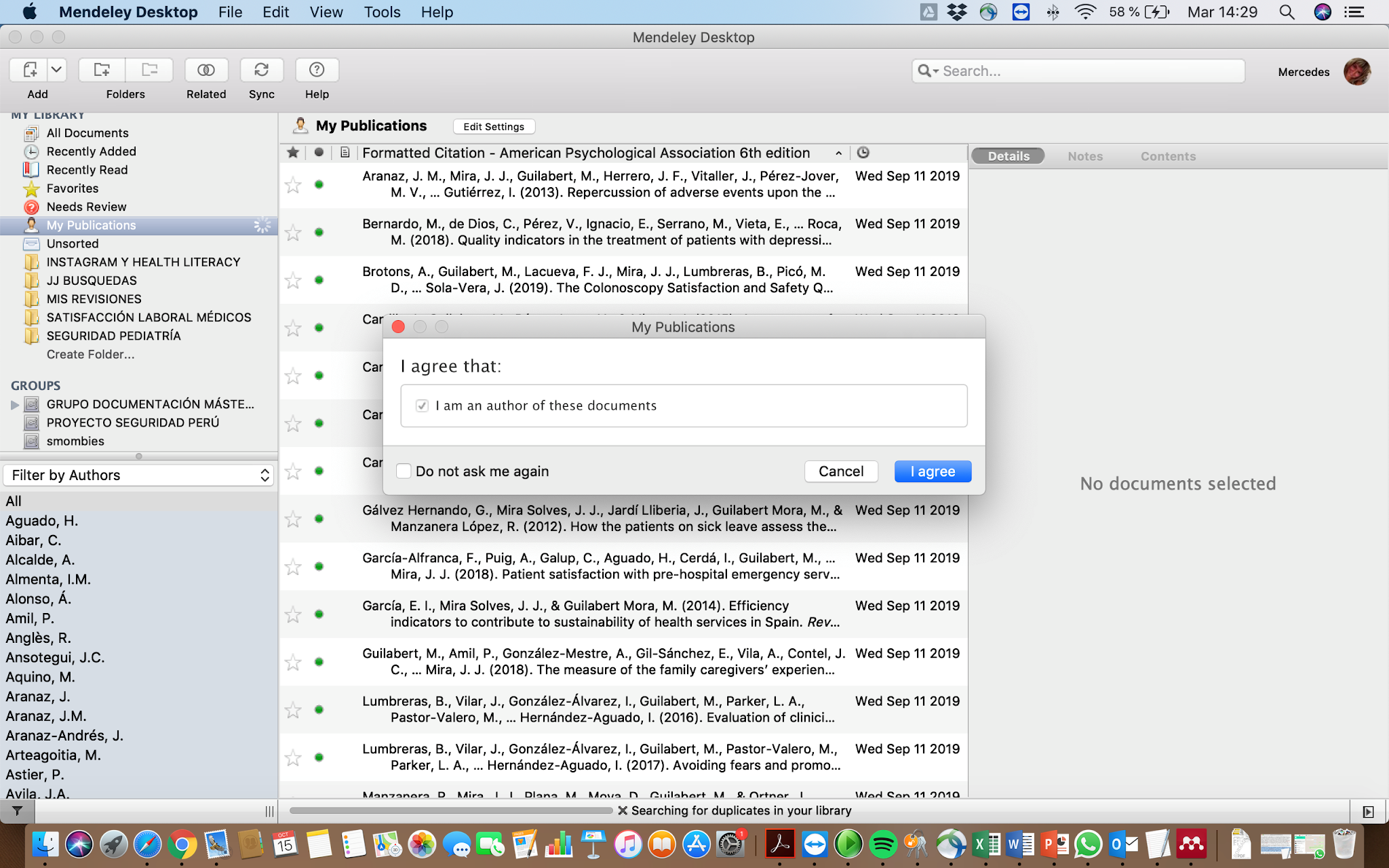 Podemos probar esta opción buscando en nuestros propios documentos en Mendeley y en caso de apariciones, incorporarlos ya a nuestra biblioteca y a la correspondiente carpeta My Publications.