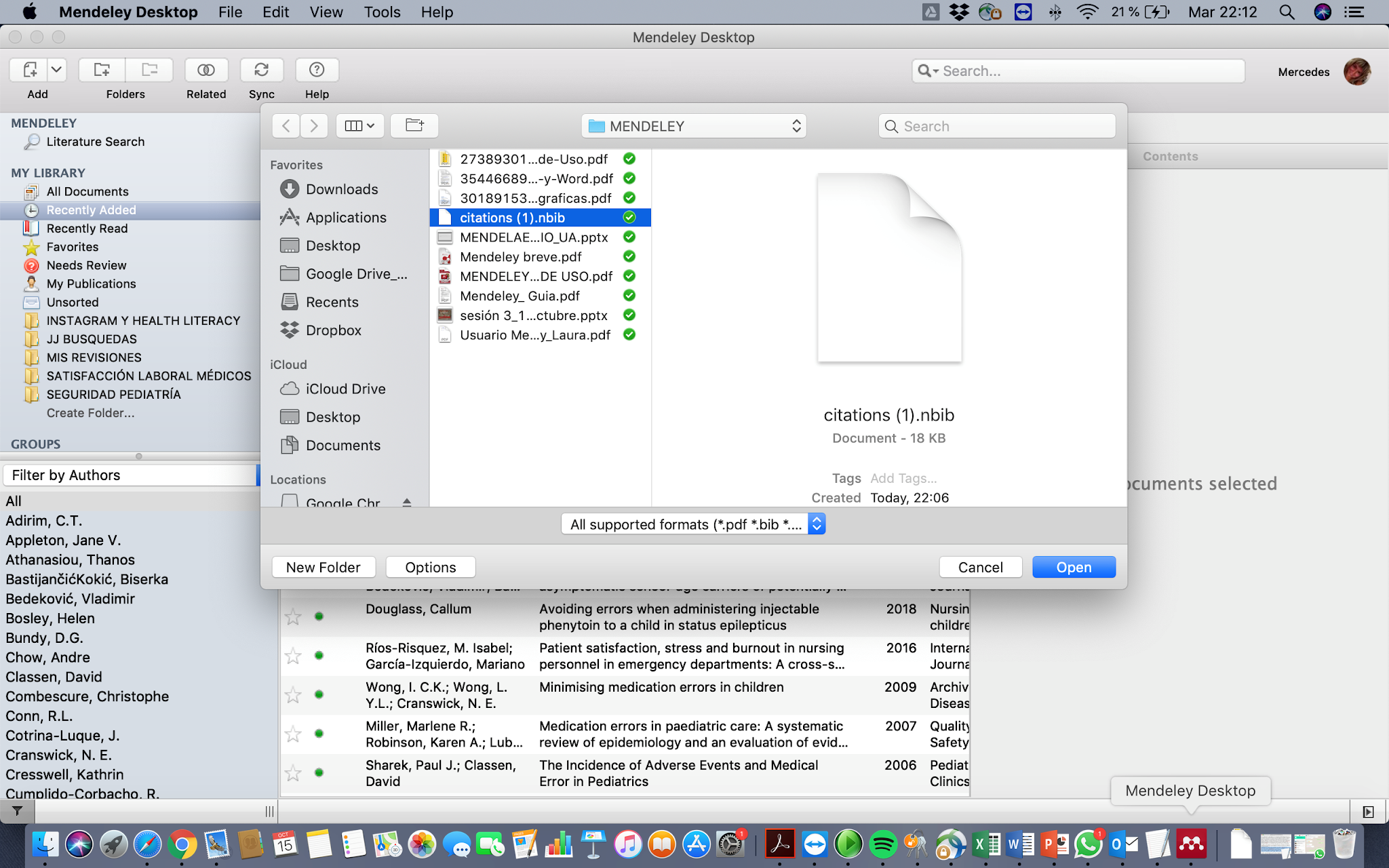 4) Drag and drop files or folders: permite arrastrar archivos o carpetas y guardarlos de forma muy rápida en la ventana de Mendeley. Estos archivos podemos recuperarlos en la carpeta Recently added en el panel del lado izquierdo. Además, Mendeley permite incorporar tanto pdf como archivos RIS.