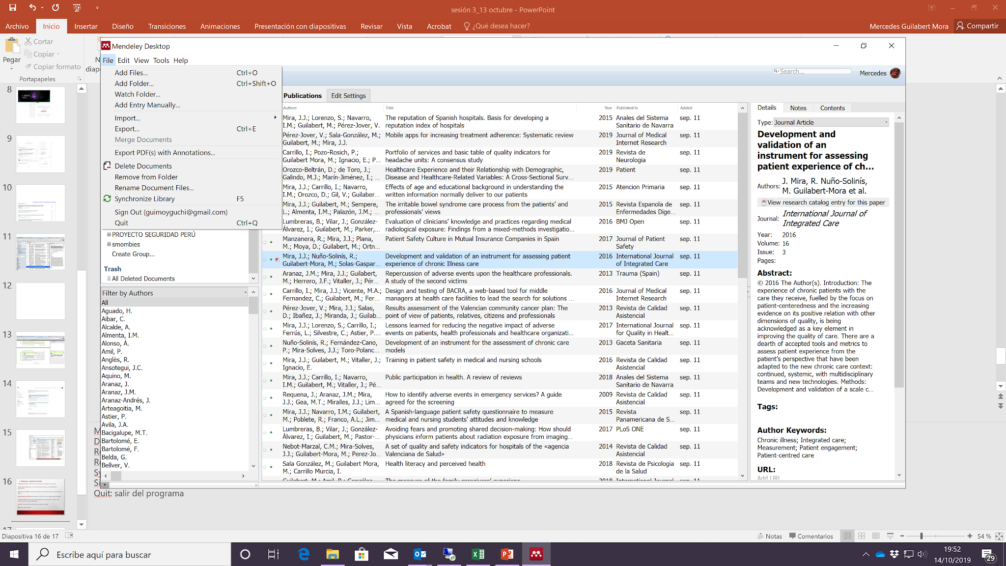 Añadir mis publicaciones En la carpeta mis publicaciones podemos arrastrar y guardar nuestras publicaciones. Podemos compartirlas con otros investigadores desde la versión web autorizando como autor la descarga.